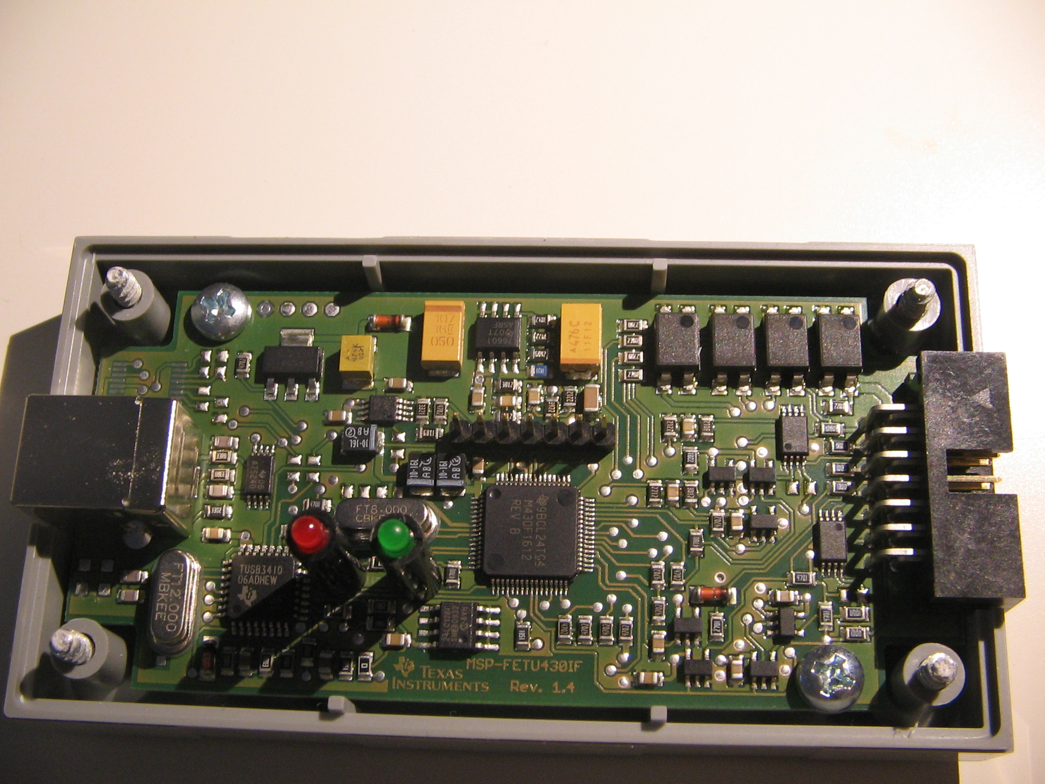 The MSP-FET430UIF is a USB debugging interface used to program and debug the MSP430 through the JTAG interface or Through the 2-wire Spy Bi-Wire protocol. No external power is required.